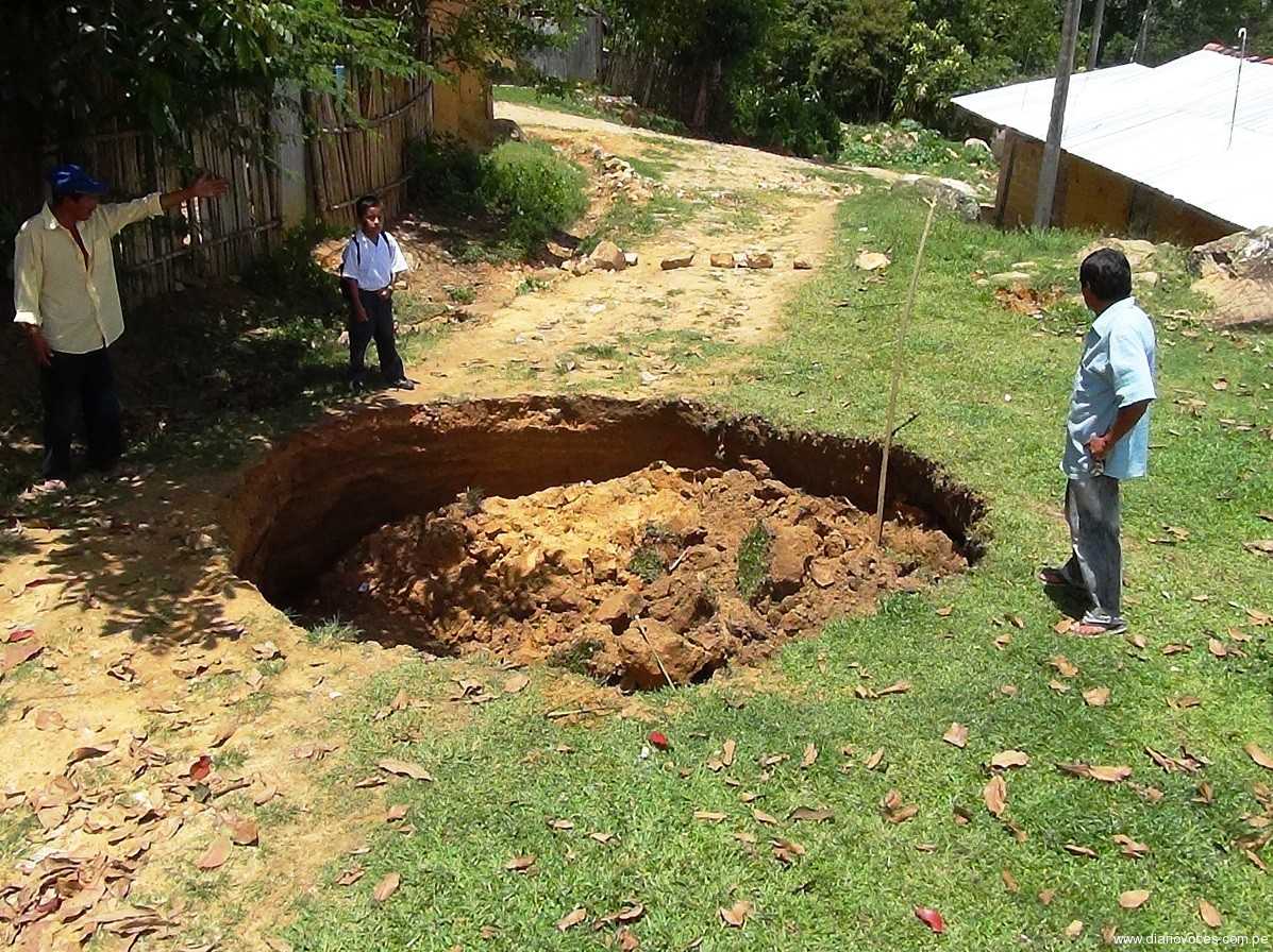 Nazario Sangama Cachique, manifestó que el hundimiento se produjo el lunes por la mañana, tras la torrencial lluvia que cayó en la región, el martes por la mañana personal del comité provincial de Defensa Civil de Lamas inspeccionó la zona afectada, pero no dieron mayores detalles del problema, situación que preocupa al vecindario.