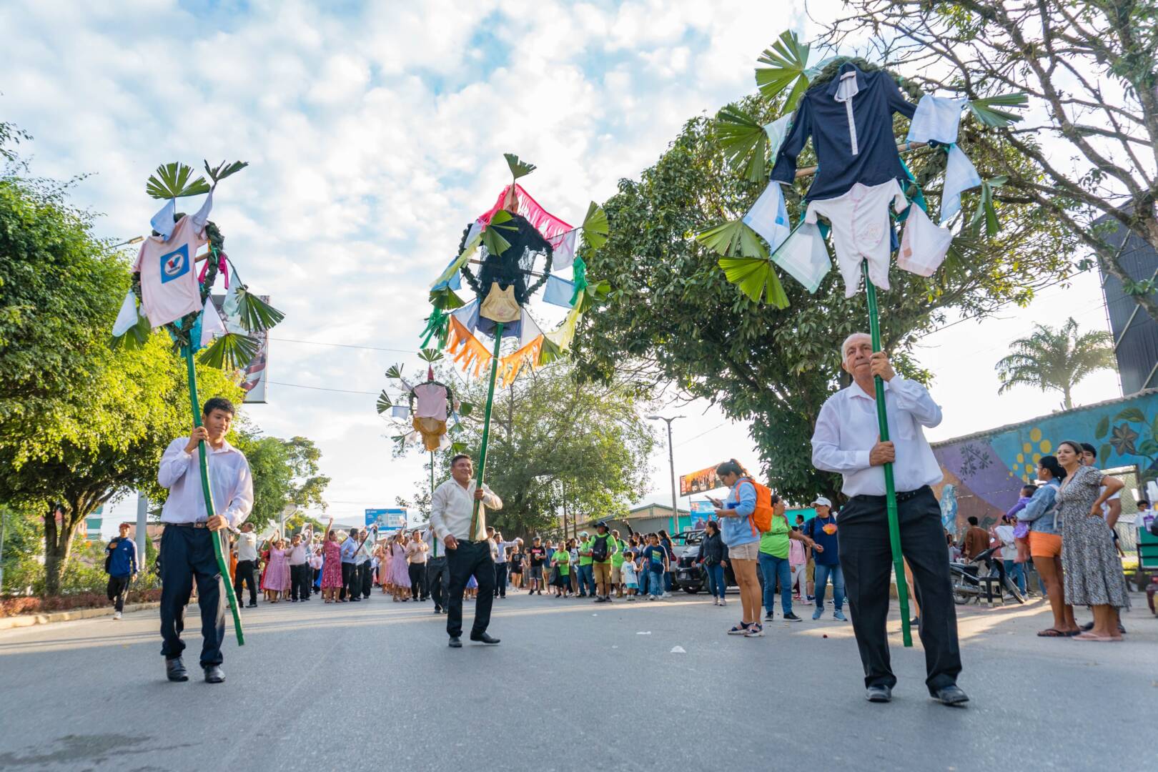 Calvario es uno de los barrios más amplios y antiguos de Moyobamba. Su nombre evoca historias coloniales y religiosas, como la presencia de una laguna con una piedra de ejecución o el recuerdo del sitio de la crucifixión en Jerusalén. Hoy, sin embargo, también representa un modelo de celebración responsable, donde la tradición se reinterpreta desde una visión de respeto al entorno.