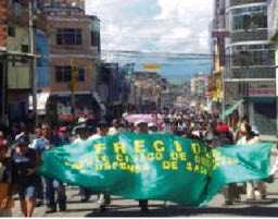 Además el pueblo sanmartinense no permitirá que se produzca el despojo ni el cercenamiento de nuestro territorio, se afirma en el comunicado del FRECIDES, donde se puede leer que hoy lunes a partir de las 9 de la mañana se realizará una gran movilización en Tarapoto con la participación de las diez provincias, haciendo sentir la voz de protesta contra el gobierno de turno, que intenta beneficiar a la región Loreto.