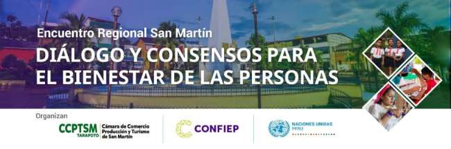 Para contribuir al cierre de brechas en la región San Martín, este 06 de diciembre a las 5:00 pm, se realizará el Encuentro Regional San Martín: “Diálogo y consensos para el bienestar de las personas”, organizado por la Cámara de Comercio, Producción y Turismo de San Martín; la Confederación Nacional de Instituciones Empresariales Privadas (CONFIEP); y el Sistema de las Naciones Unidas en el Perú.