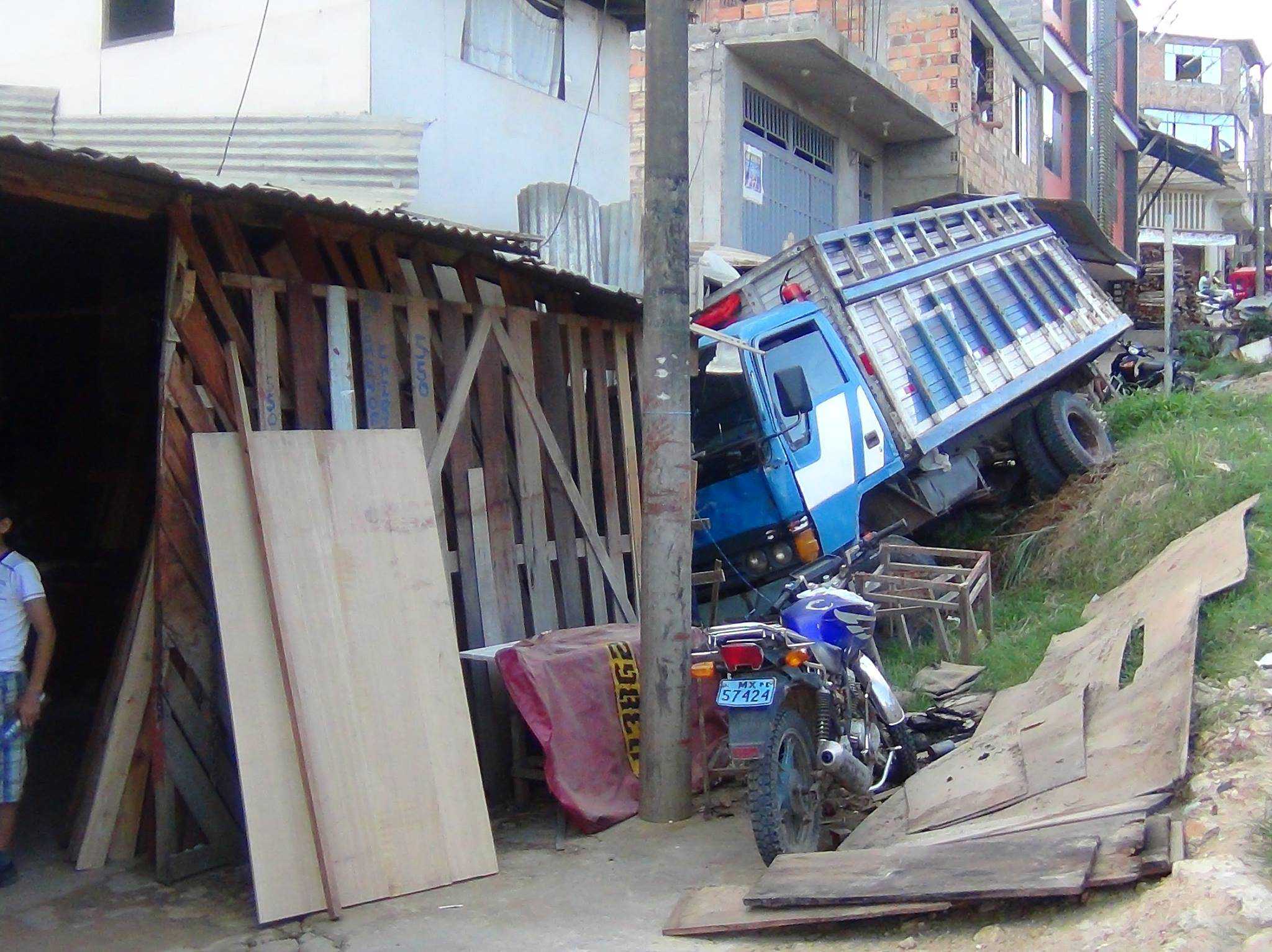 La tarde de ayer un camión estacionado en la quinta cuadra del jirón Comandante Chirinos en el barrio Comercio, se desenganchó el freno, y por poco no ocurre una tragedia.