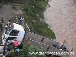 El hecho se registró ayer al promediar de las 2.00 pm. En circunstancias en que el chofer de nombre José Soberón (40), al descender del vehículo lo había dejado estacionado en la primera cuadra de la avenida Cajamarca sur a unos 30 metros del río Yuracyacu, cuando de pronto el camión fuso de placa WX -2087 que estaba con la tolva vacía, empezó a rodar de retroceso yendo a parar en el río Yuracyacu quedando la parte trasera sumergida en el agua.