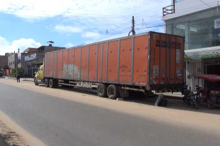 En esta cuadra nadie sabe  lo que pasó con ese camión para que permanezca estacionado en un lugar donde el tránsito vehícular es fluido, sin embargo trascendió que está intervenido por la Policía Nacional, es por esta razón que los propietarios de los establecimientos comerciales exigen que lo reubiquen a una calle aledaña donde no   perjudique a nadie.