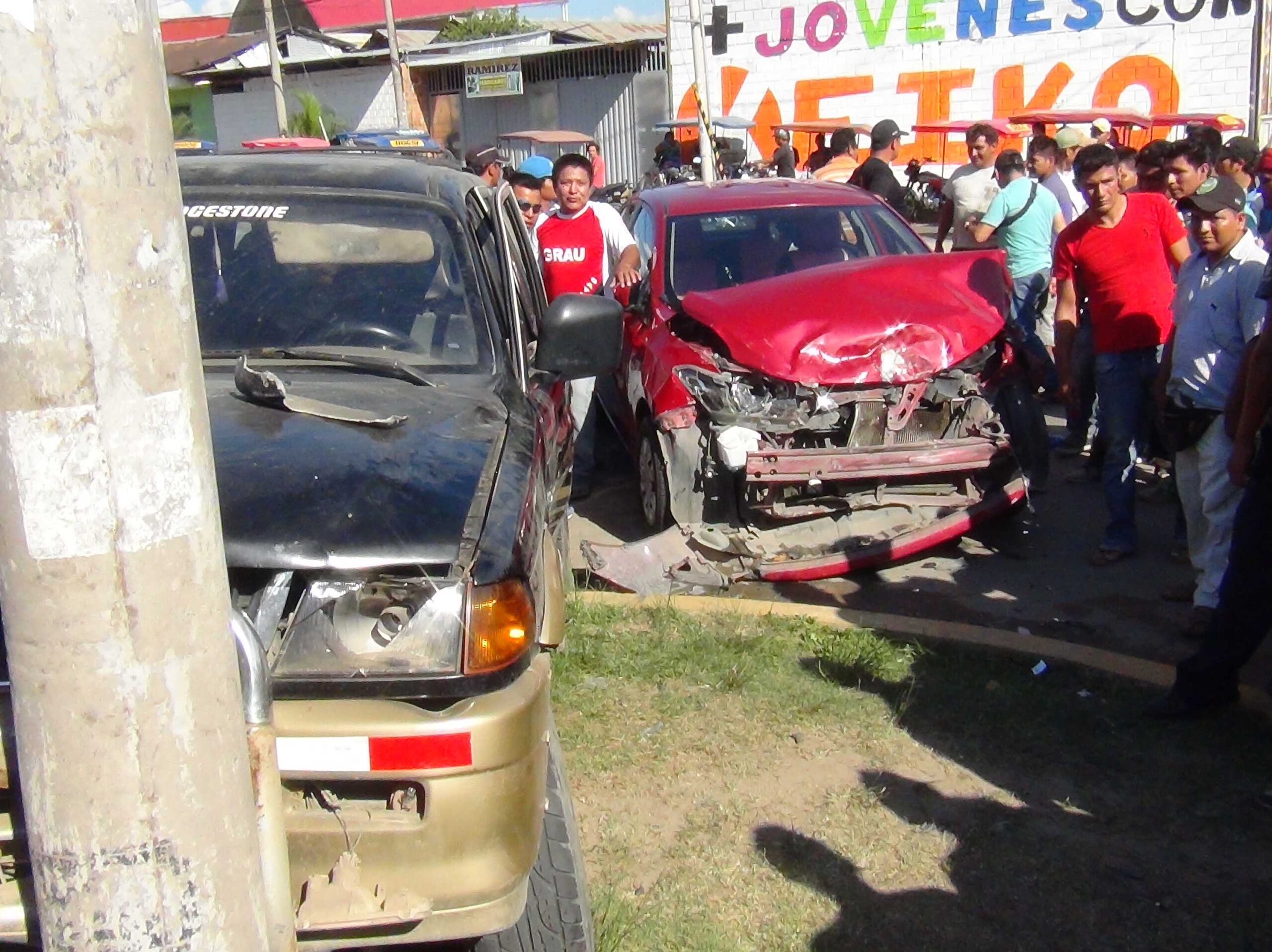 Un espectacular accidente, ocurrió la tarde de ayer, cuando una camioneta Mitsubishi color verde conducida por Próspero Reátegui, chocó con un auto Toyota Yaris, de la empresa de Transportes Cajamarca manejado por Isidorio Delgado Zumba; en las inmediaciones del óvalo Jiménez Pimentel.