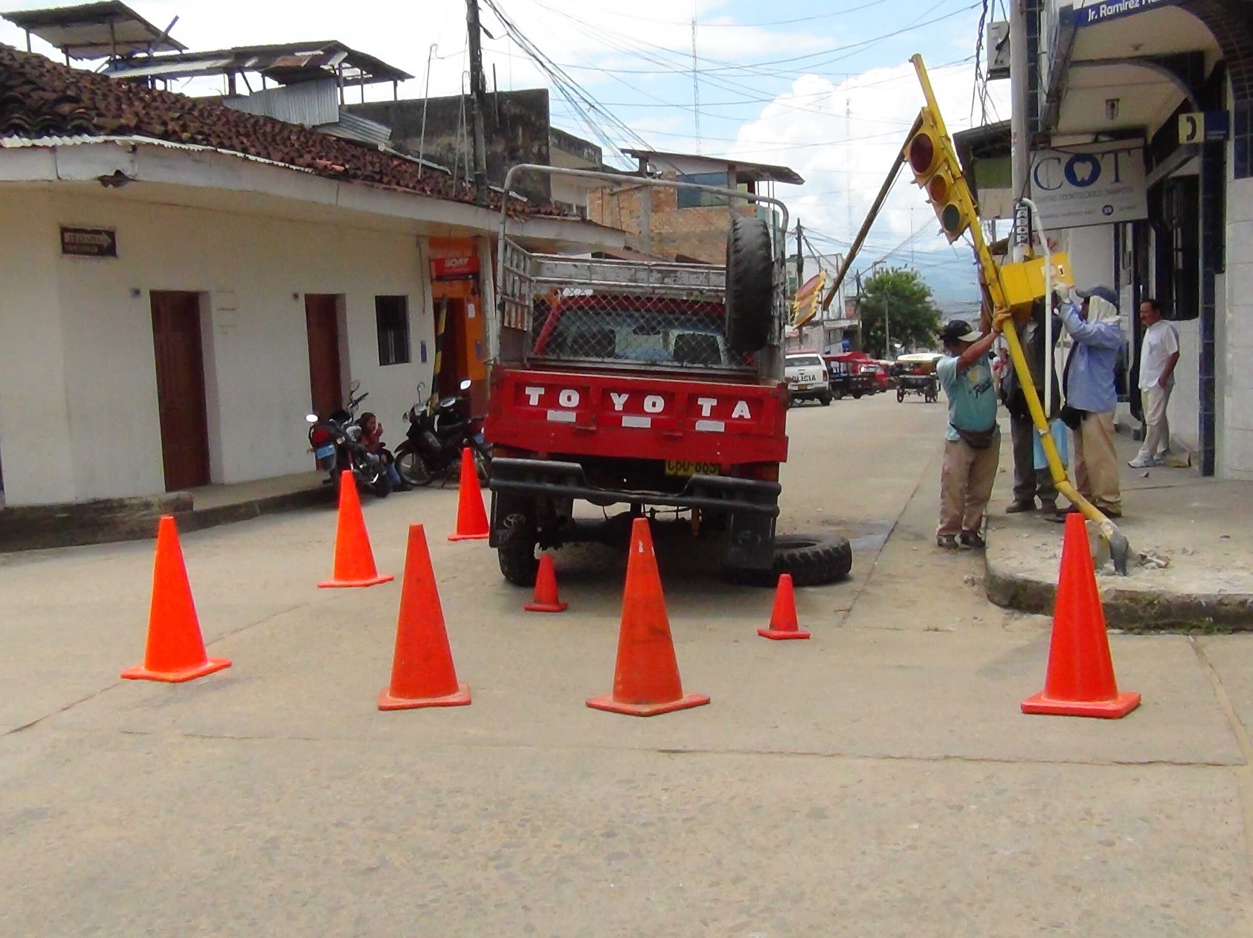 SEMAFORO DERRIBADO. pOR CAMIONTETA RUTERA