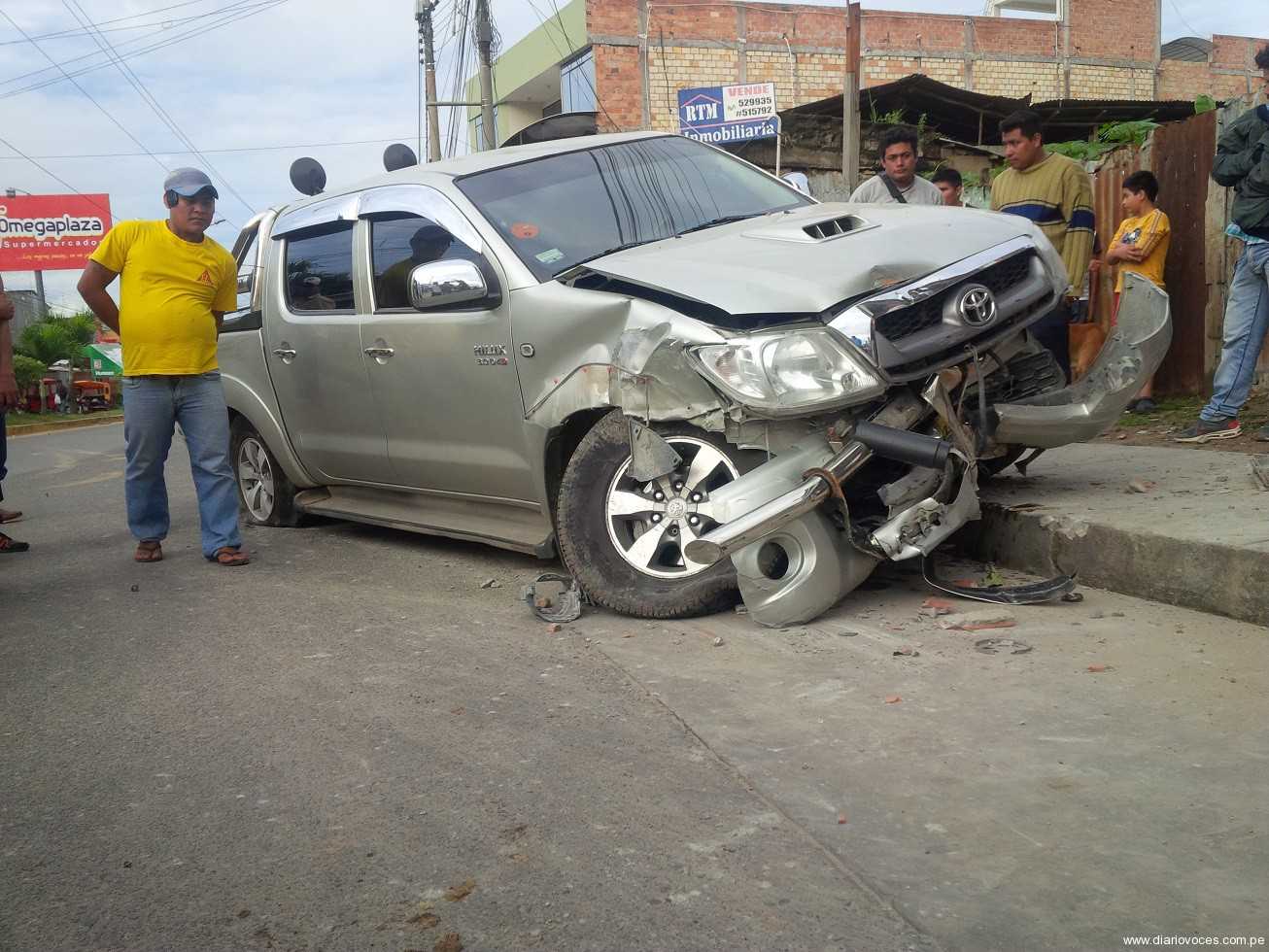 El hecho se produjo ayer a las 6:30 de la mañana, un transeúnte que estuvo cerca al poste de concreto se salvó de milagro, ya que no tuvo tiempo de ponerse a buen recaudo, testigos del accidente manifestaron que la camioneta de placa de rodaje A6U – 817 apareció de un momento a otro a excesiva velocidad y se desconoce si hubo fallas mecánicas.