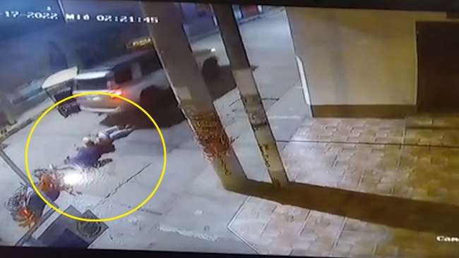 En otra toma de la cámara de video vigilancia, se observa que un mototaxista trata de evitar que el conductor de la camioneta huya, sin embargo, logra esquivarlo y se escapa con dirección al parque Suchiche.
