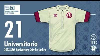 Universitario de Deportes, presentó en 2013 la camiseta edición limitada en homenaje a los 100 años de Lolo Fernández, máximo ídolo de toda la historia del club merengue. Y es justamente esa casaquilla la que fue escogida por el blog The Football Attic como una de las 50 más bonitas de la historia.