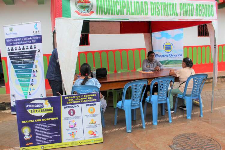 Electro Oriente S.A. y la Municipalidad Distrital de Pinto Recodo realizaron coordinaciones para de manera conjunta se pueda realizar acciones para ofrecer orientación a la población sobre el uso eficiente de la energía, la campaña se ha desarrollado con éxito hasta el día de ayer miércoles 10 en la plaza de armas de esta localidad.