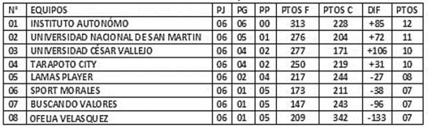 La Liga Deportiva Distrital Mixta De Basquetbol-Tarapoto viene desarrollando de manera interesante su campeonato apertura 2017, categoría superior varones. El viernes 09 de junio se registraron los siguientes resultados en el coliseo cerrado Bicentanario: