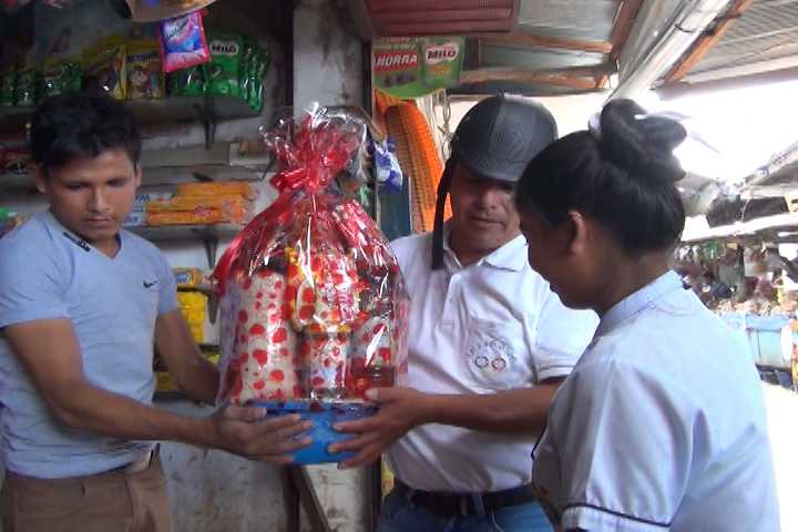 Los comerciantes del mercado Dos de Tarapoto vienen haciendo su agosto en pleno mes de mayo, en la mayoría de puestos de venta en el interior de este centro de abasto, venden canastas de víveres y los precios varían entre 25 y 80 nuevos soles.