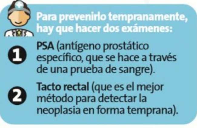 A partir de los 40 años es recomendable que los hombres se realicen el estudio con el antígeno prostático específico (PSA), pero, además, es necesario el tacto rectal. “A los hombres les incomoda este examen. En la consulta aún hay mucho tabú. Los varones se hacen el examen de sangre, pero no quieren hacer el tacto rectal, cuando debe hacerse como una rutina todos los años”, dijo Velarde.