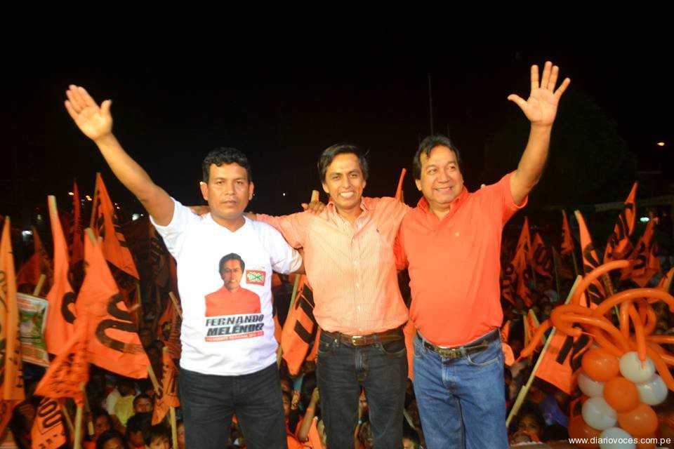 Yurimaguas. Con un multitudinario mitin en la plaza Bolognesi de Yurimaguas, el sábado 27 de setiembre de 2014, el líder y candidato a la presidencia de la región Loreto, por el Movimiento de Integración Loretana (MIL), Fernando Meléndez Celis, cerró su campaña proselitista en la provincia de Alto Amazonas, junto al candidato a la alcaldía de provincial, Héctor Hidalgo Rojas y candidato a la consejería, Javier Álava Floridez.