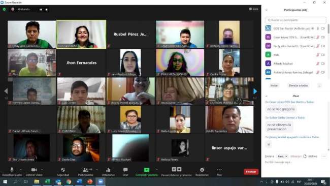 A fin de seguir contribuyendo con la sostenibilidad del servicio de saneamiento en el ámbito rural, la Superintendencia Nacional de Servicios de Saneamiento (Sunass) realizó el taller virtual “Metodología para la fijación del valor de la cuota familiar en el ámbito rural”, donde se capacitaron a las áreas técnicas municipales de 13 municipios distritales de San Martín, como Alto Biavo, Pajarillo, Soritor, Nuevo Progreso, Bajo Biavo, Eslabón, Alto Saposoa, Chazuta, Huicungo, Cuñubumqui, Yorongos, Shanao y Jepelacio.