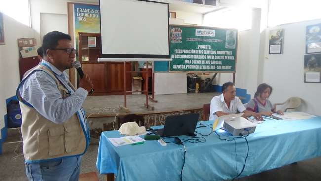 Saposoa. La Municipalidad Provincial de Huallaga a través del proyecto “Recuperación de los Servicios Ambientales de los suelos degradados por el cultivo de la coca en la cuenca del río Saposoa – provincia de Huallaga – Región San Martín”, inició un programa de capacitación en el manejo adecuado de los residuos sólidos a sus técnicos, operadores de la Red de Salud Huallaga, Presidentes de los Barrios de Saposoa, entre otros invitados.