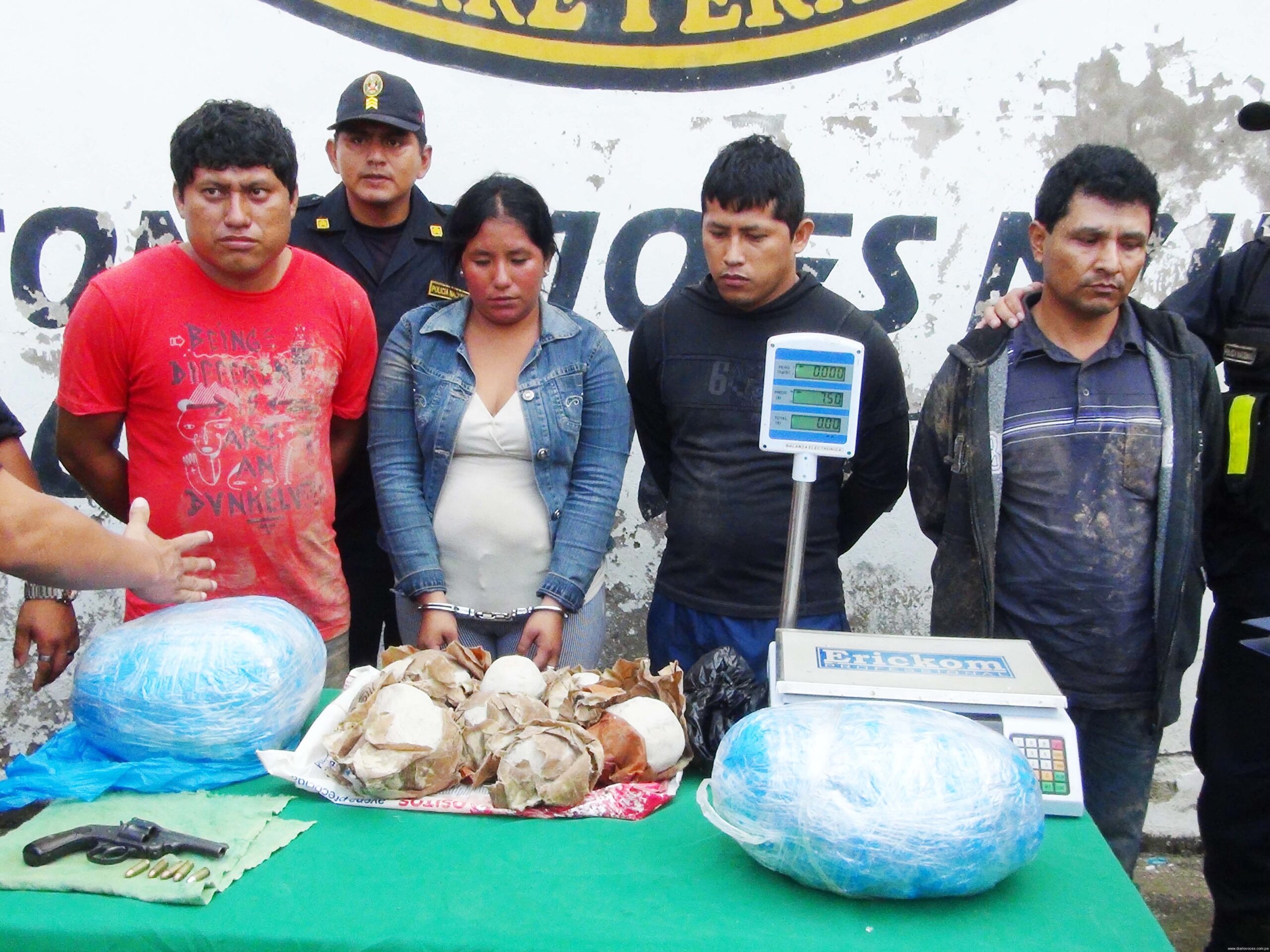 Agentes de la Policía de Cerretas (POLCAR) de Tarapoto, intervinieron el sábado por la madrugada a cuatro personas que transportaban desde la parte sur de la región más de 22 kilos de pasta básica de cocaína, uno de los detenidos tenía un arma de fuego entre sus pertenecías y una pareja brindaba seguridad al vehículo que transportaba la ilegal mercancía, durante el registro vehicular un sujeto logró darse a fuga.