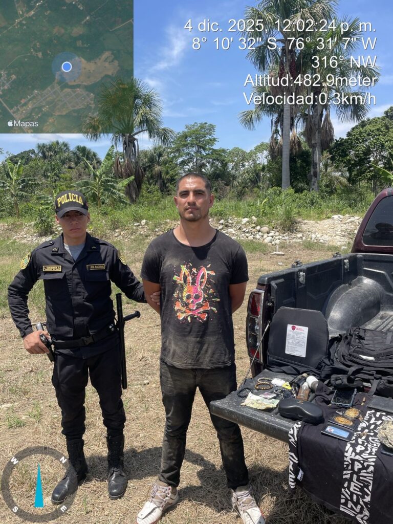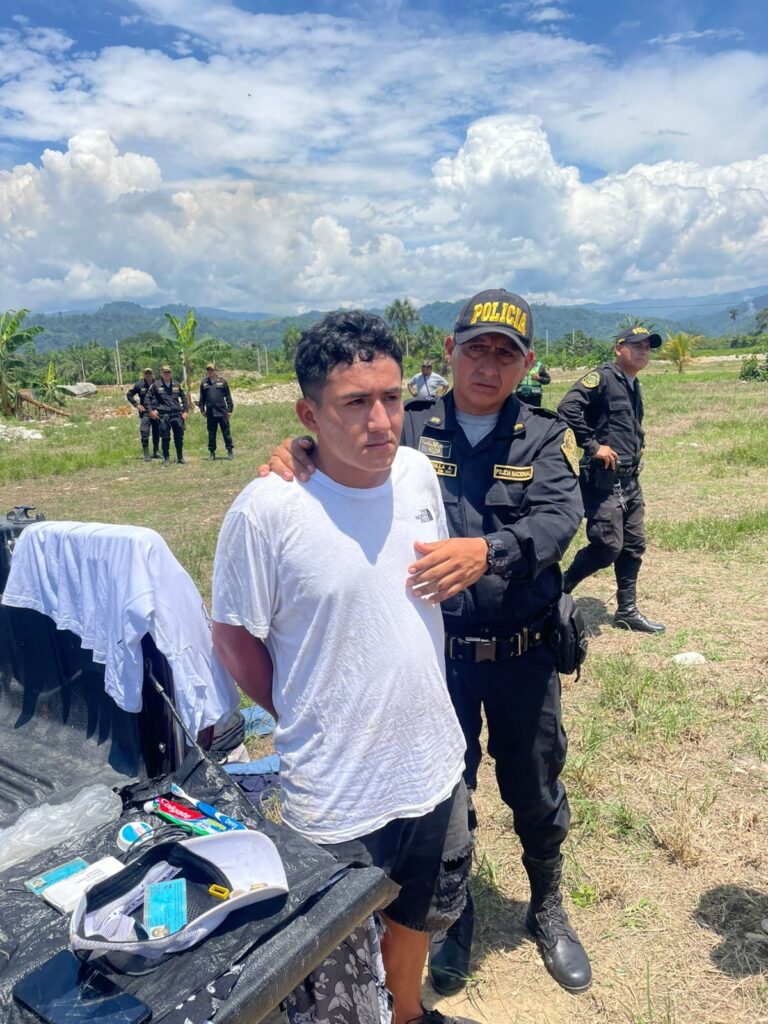 Horas después, mediante búsqueda en campo abierto, la Policía logró ubicar y detener a Elky Muñoz Orbegozo, quien se encontraba escondido entre matorrales. A poca distancia fue capturado también Jarold Jhowlin Horna Díaz, en posesión de celulares, municiones y documentos personales, los cuales fueron retenidos conforme a ley.