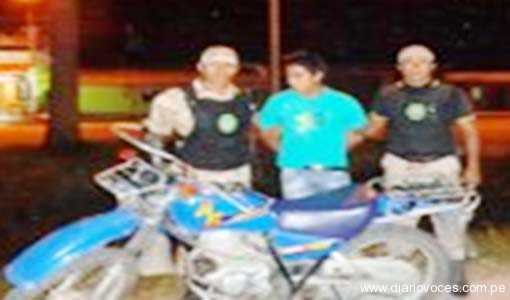 Rioja.- El fin de semana, efectivos del serenazgo municipal de Rioja, al promediar las 21:05 horas intervinieron en la carretera Fernando Belaúnde, a la altura del grifo Valencia, a un presunto delincuente que refirió llamarse Jhimy Jiko Góngora Reyes (18), quien se desplazaba a bordo de una motocicleta marca Yamaha AG-200 de color azul, de placa A4-2363, según refiere el jefe del serenazgo Edson Espinoza Céspedes, la intervención se realizó en mérito a una llamada telefón del Serenazgo de Moyobamba, alertando que a inmediaciones del mercado Ayaymama habían robado una motocicleta dando todas las características y que se dirigía a Rioja, disponiendo de inmediato el desplazamiento de dos grupos de serenos motorizados a la carretera y al encontrarse a la altura del grifo Rakso, observaron que una motocicleta con las mismas características pasaba a gran velocidad, iniciándose la persecución y su posterior captura a la altura del grifo valencia.