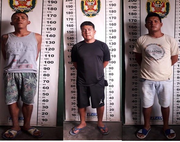 El Mayor PNP Oscar Montjoy, informó que los sujetos detenidos fueron identificados como Alder Lucas Guevara Villanueva (22), Cleider Vargas Domínguez (21) y Alex Eli Rodríguez Villanueva (22), quienes al ser reconocidos por la víctima aceptaron su participación en el hecho delictivo.