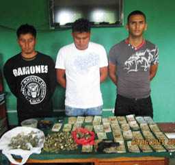 Al momento del registro personal, la policía encontró en las cosas de Sajami Ushiñahua cerca de 847 nuevos soles en monedas, mientras que García Saavedra tenía más de 800 nuevos soles en billetes de diferentes nominaciones. Los intervenidos indicaron ser naturales de Tarapoto.