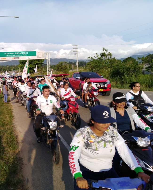 El candidato a la gobernación regional por Acción Regional, Pedro Bogarín, realizó ayer en la tarde una caravana que se inició en el óvalo del periodista de la Banda de Shilcayo y terminó en la plaza principal del distrito de Morales, participaron en la misma la militancia activa así como otras personas de diferentes tiendas políticas.