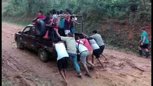 En pésimas condiciones tienen que viajar hacia Sauce en época de lluvia las personas que visitan ese distrito, varios tramos de la carretera están prácticamente intransitables tal como se puede observar en imágenes difundidas en las redes sociales, situación que pone en riesgo la integridad de los pasajeros y transportistas quienes llegan a la Laguna Azul prácticamente llenos de lodo.