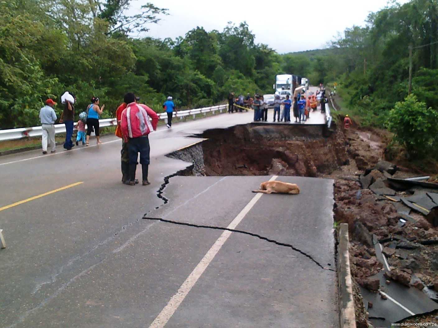 Debido a la torrencial lluvia que viene soportando la región San Martín, ayer por la tarde se hundió un tramo de la carretera Fernando Belaúnde Terry, cerca a la entrada que conduce a la localidad de Mamonaquihua, afortunadamente no hubo heridos ni vehículos afectados, al cierre del presente informe, los responsables de Provías Nacional, restringieron el pase vehicular y peatonal hasta nuevo aviso.