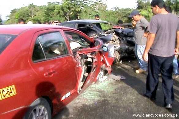 La imprudencia de los conductores de vehículos que cubren rutas interprovinciales, continúan cobrando víctimas mortales, el fin de semana, el choque de automóviles en la carretera Fernando Belaúnde Terry, tramo norte, cerca al distrito de Tabalosos, dejó como saldo dos personas fallecidas y siete heridos, quienes fueron conducidas al Hospital Regional de Tarapoto.