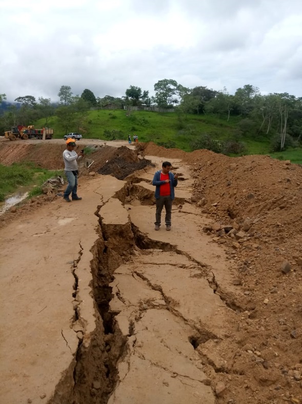 Moyobamba. Tras la caída de una intensa lluvia que duró más 4 horas, serios daños generó en la carretera en construcción sector Shango – Indañe, ela lluvia hizo que los tramos que fueron rellenados empezaran a sumirse, dejando gigantescas grietas. Hasta el lugar se hicieron presente las autoridades de la secretaria de Defensa Civil, quienes corroboraron los perjuicios causados por las lluvias. También llegaron funcionarios del Proyecto Especial Alto Mayo (PEAM) quienes en coordinación con la empresa ejecutora evalúan las acciones a seguir teniendo en cuenta que esto podría significar obligatoriamente una ampliación de plazo y adicional económico.