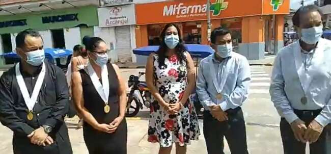 Haciendo un alto en sus labores y por acuerdo unánime, los magistrados de los Juzgados de la provincia de Alto Amazonas, entre ellos, el juez de Investigación Preparatoria, Quique Rodriguez, salieron un momento a saludar y a respaldar la manifestación del colectivo Ni Una Menos que realizaba en los exteriores de la sede judicial el miércoles 30 de marzo de 2022, fecha de la segunda audiencia virtual del juicio oral contra Richard Sandoval Leandro e Irene Cometivos Villacorta, principales presuntos responsables del delito de violación sexual y parricidio en agravio de Cruz Selene, hija de ambos, ocurrido el 28 de febrero de 2017 en Yurimaguas.