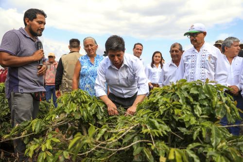 El presidente de la República, inspeccionó hoy el funcionamiento y el proceso de riego tecnificado para la producción de café en el fundo “Niño Jesús”, en el centro poblado Marona.