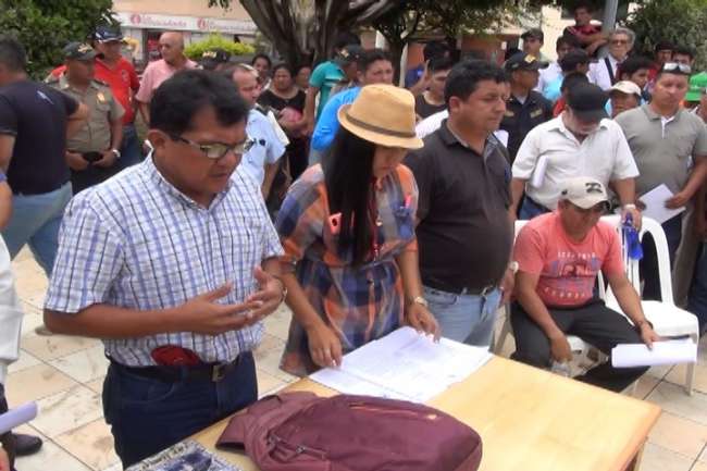 Pobladores del Valle del Pasiquihui vuelven al frontis de la Municipalidad de Lamas. Exigen que no anulen la buena pro para el proyecto de mejoramiento