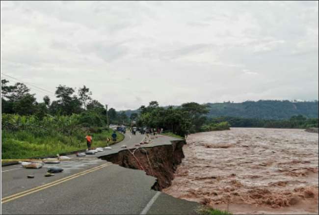 CARRETERA A LIMA POR LA ZONA SUR DE LA REGION SAN MARTIN INTERRUMPIDA. COLAPSO PARTE DE LA PLATAFORMA DEL ASFALTO CERCA AL OVALO CON DIRECCION