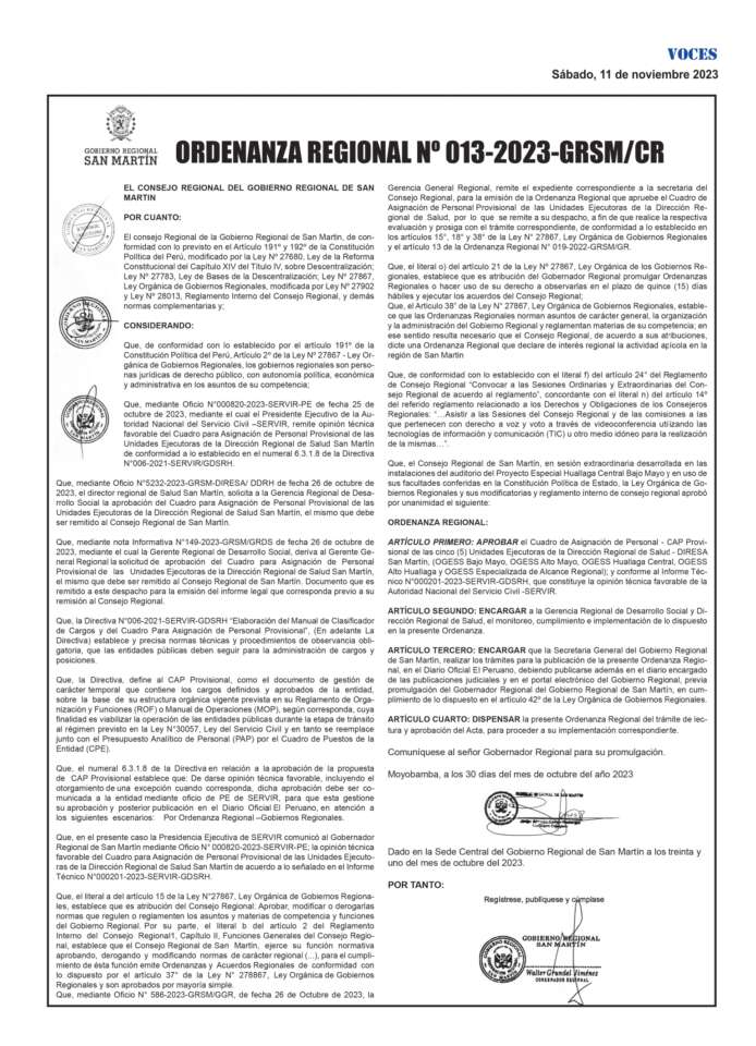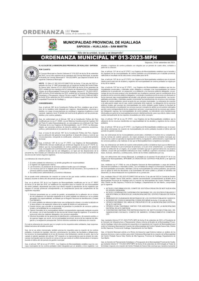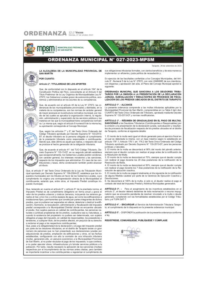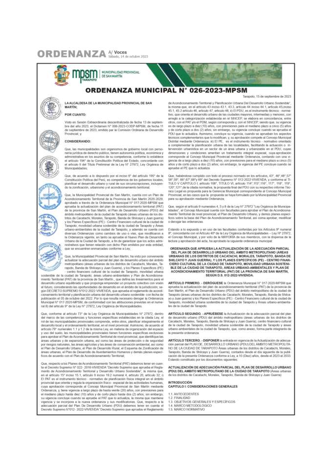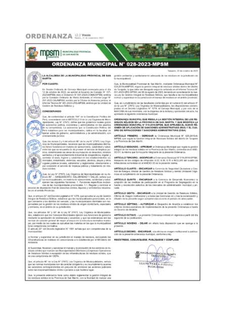 Actualidad Municipalidad Provincial de San Martin: Ordenanza Municipal N 028-2023-MPSM / Decreto de Alcaldia N 008-2023-MPSM 21/11/2023