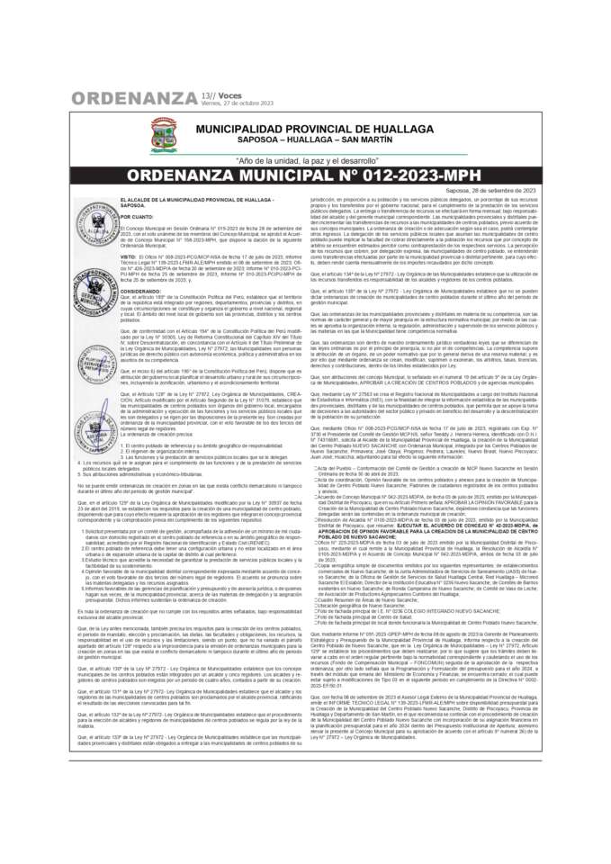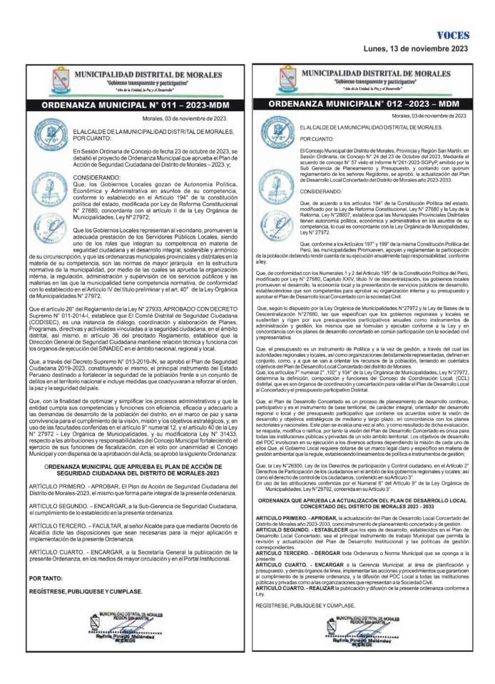 Actualidad Municipalidad Distrital de Morales: Ordenanza Municipal N° 011-2023-MDM, Ordenanza Municipal N° 012-2023-MDM, Ordenanza Municipal N° 013-2023-MDM, Ordenanza Municipal N° 014-2023-MDM 13/11/2023