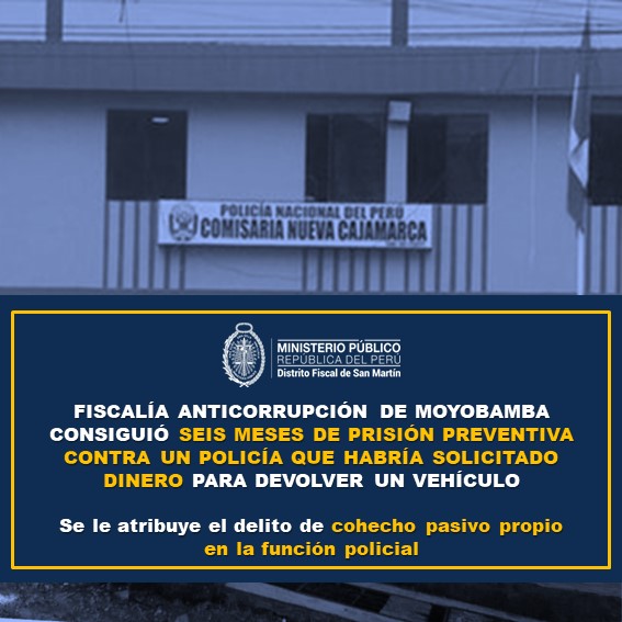 Se trata del SO3PNP Ever Tenorio, quien desempeñaba funciones en la Oficina de Delitos, Faltas y Contravenciones de la comisaría de Moyobamba. La Fiscalía Provincial