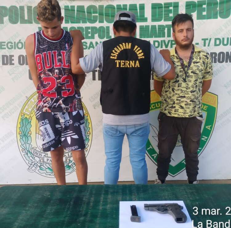 Uno de ellos tras arrojar una pistola huyó, pero fue intervenido en la cuadra 22 del jirón Alfonso Ugarte, estarían de manera ilegal en el