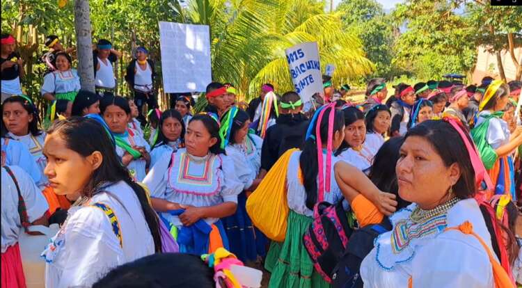FRENTE A LA UGEL LAMAS Pobladores de la localidad de Chumbaquihui del distrito de Pinto Recodo de la provincia de Lamas, ayer por la mañana