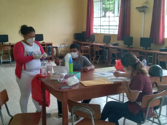 En coordinación con la municipalidad distrital bandina y personal del Minsa. Cumpliendo con los protocolos sanitarios establecidos por el sector salud para evitar el contagio