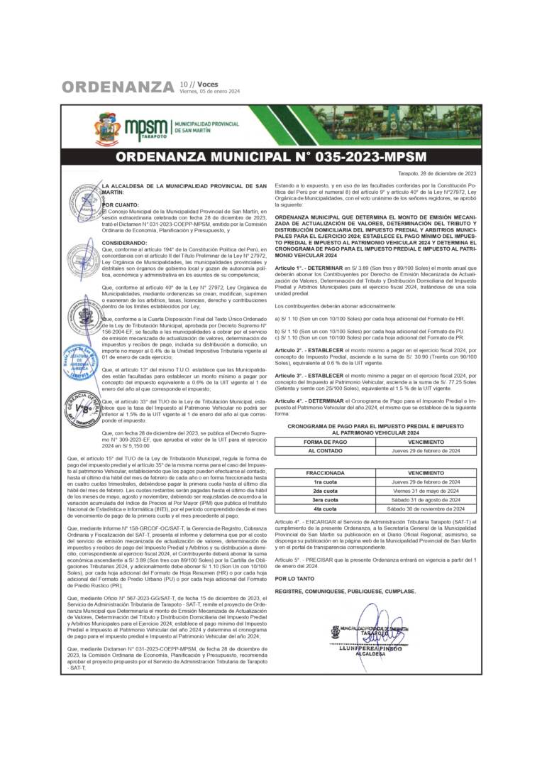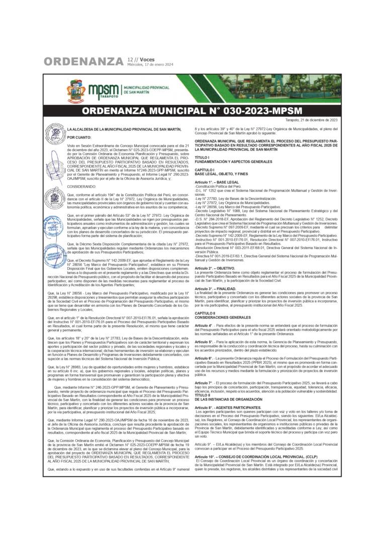 Actualidad Municipalidad Provincial de San Martin: Ordenanza Municipal N° 030-2023-MPSM /Ordenanza Municipal N° 031-2023-MPSM /Ordenanza Municipal N° 032-2023-MPSM 17/01/2024