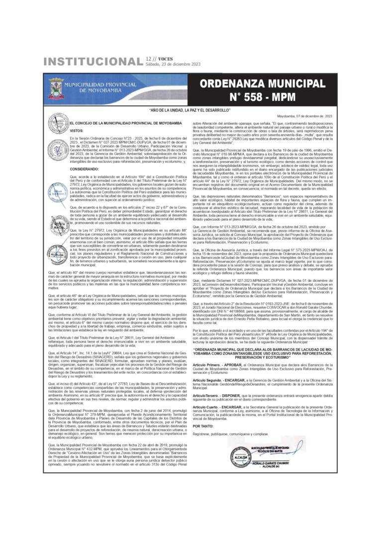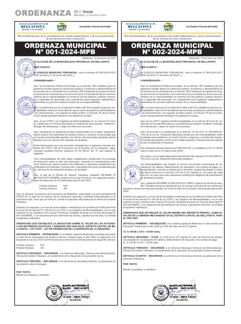 Actualidad Municipalidad Provincial de Bellavista: Ordenanza Municipal N° 001-2024-MPB . Ordenanza Municipal N° 002-2024-MPB 17/01/2024