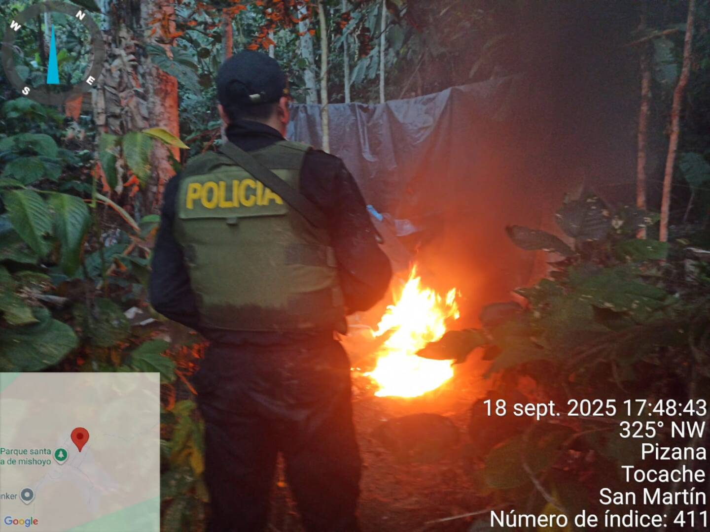 En Tocache Agentes de la Policía Nacional del Perú (PNP), Región Policial San Martín, a través de la Comisaría Sectorial Tocache, lograron ubicar y destruir un laboratorio rústico destinado