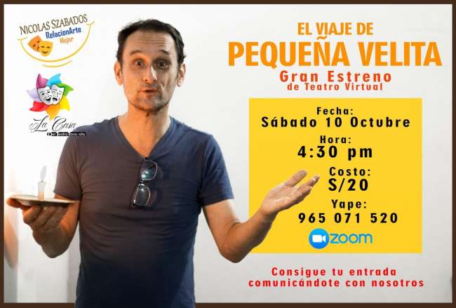 La obra teatral “El Viaje de pequeña Velita”, del actor y director belga, Nicolas Szabados, se estrena hoy sábado a las 4:30 de la tarde