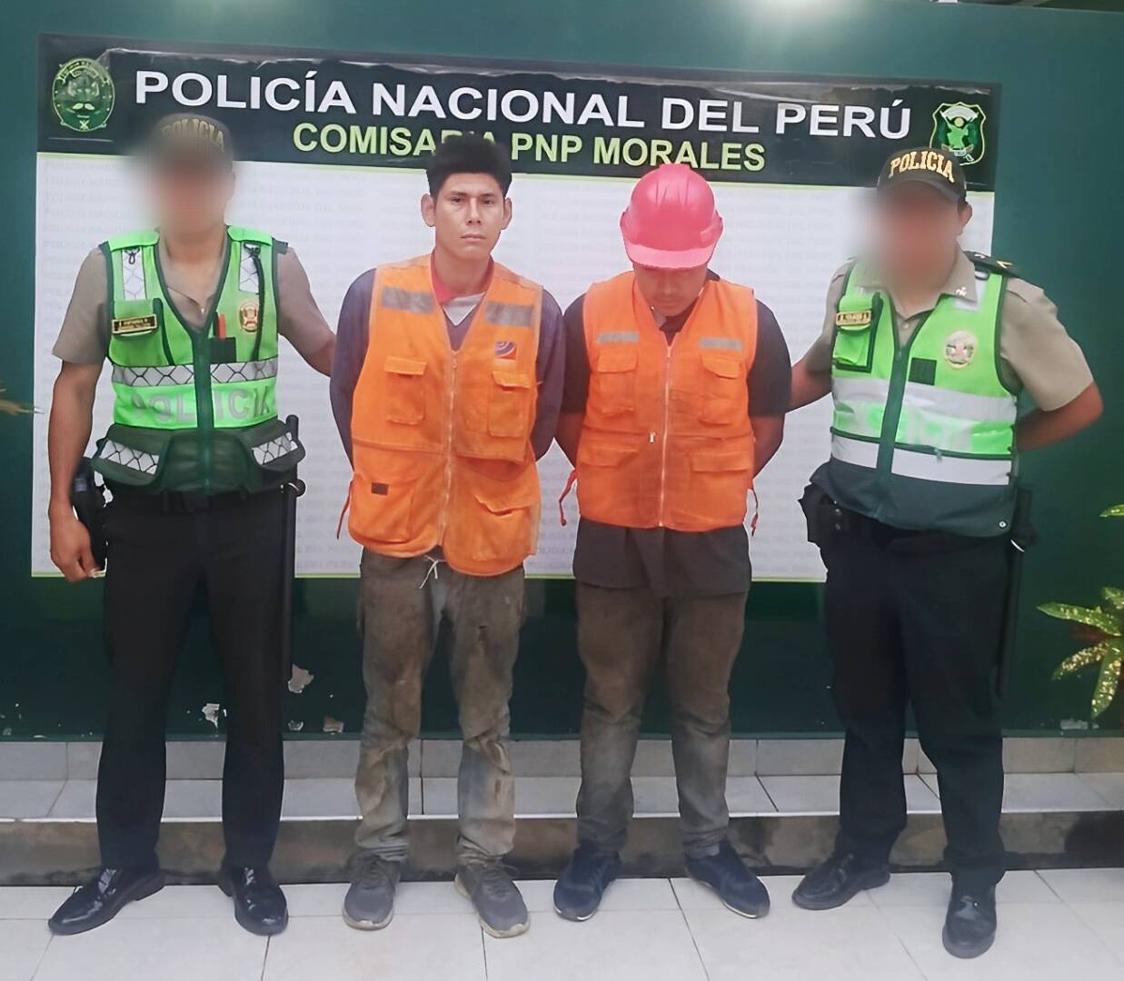 Agentes de la comisaría del distrito de Morales intervinieron ayer a dos sujetos identificados como Jerson Luna Salas (29) y Llerlin Tuanama Linares (18), presuntos
