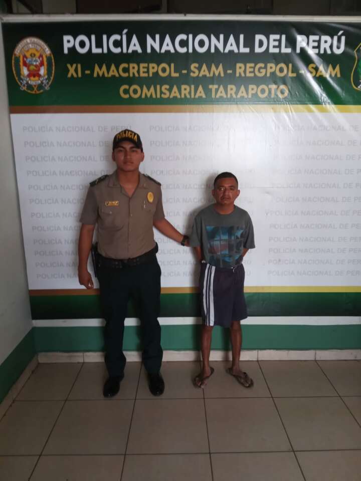 En Tarapoto El intervenido fue identificado como Manuel Villoslada Hernández, conocido en Tarapoto por ser cuidador de motos y también trabaja como lustrabotas. El Personal