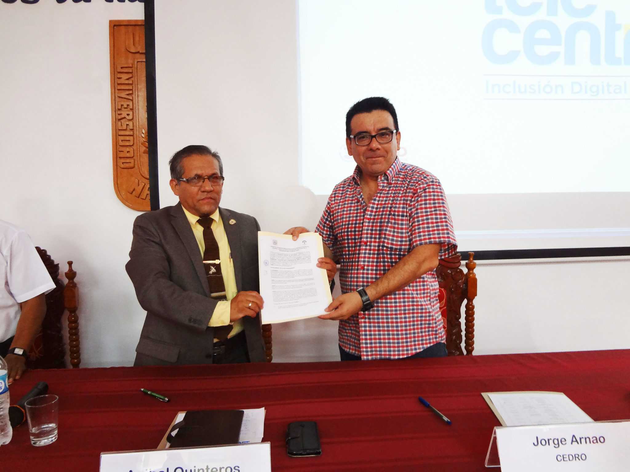 El jueves 21 de abril, en ceremonia realizada en la sala de videoconferencias de la Universidad Nacional de San Martín (UNSM), con presencia del rector Aníbal Quinteros García, CEDRO entregó certificados a los beneficiarios del programa de Inclusión Digital que fueron capacitados a través de los telecentros.