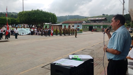 La ceremonia fue presidida por el alcalde de Huicungo Sr. Gilmer Hurtado Flores, quien resaltó la importancia de esta fecha para todos los sanmartinenses y mucho más para los huicunguinos.