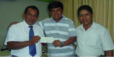 El alcalde de la Municipalidad Distrital de Nueva Cajamarca Luis Gilberto Núñez Sánchez entregó cheque por un monto de 6 mil 737 nuevos soles a director de COMPLEJO EDUCATIVO SAN JUAN BAUTISTA.