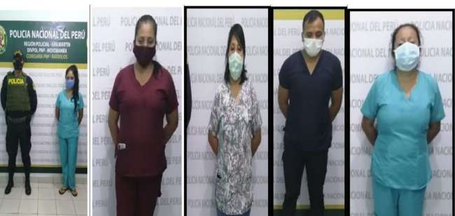 Los intervenidos fueron identificados como Rosana Jibaja Abad (Técnica en enfermería), Norma De Los Milagros Gonzales Cotrina (Psicóloga), José Gerardo De La Cruz (Bachiller en Psicología), Doriza Torres Huancaruna (Obstetra), Betty Alejandra Zapata Lara (Obstetra y Jefa del centro de salud), Erika Mariela Padilla Culqui (Médico y Nancy Altamirano Requejo.