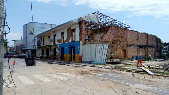 Con autorización de sus dueños, la Municipalidad Provincial de Alto Amazonas, viene demoliendo las estructuras de las casonas antiguas del centro histórico de la ciudad de Yurimaguas, al representar un peligro permanente para la integridad física de las personas.